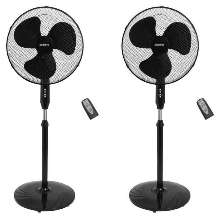 Oceanic - Pack de 2 Ventilateurs sur pied OCEANIC - 45 W - ? 44 cm - 3 vitesses - Oscillant - Inclinable - noir