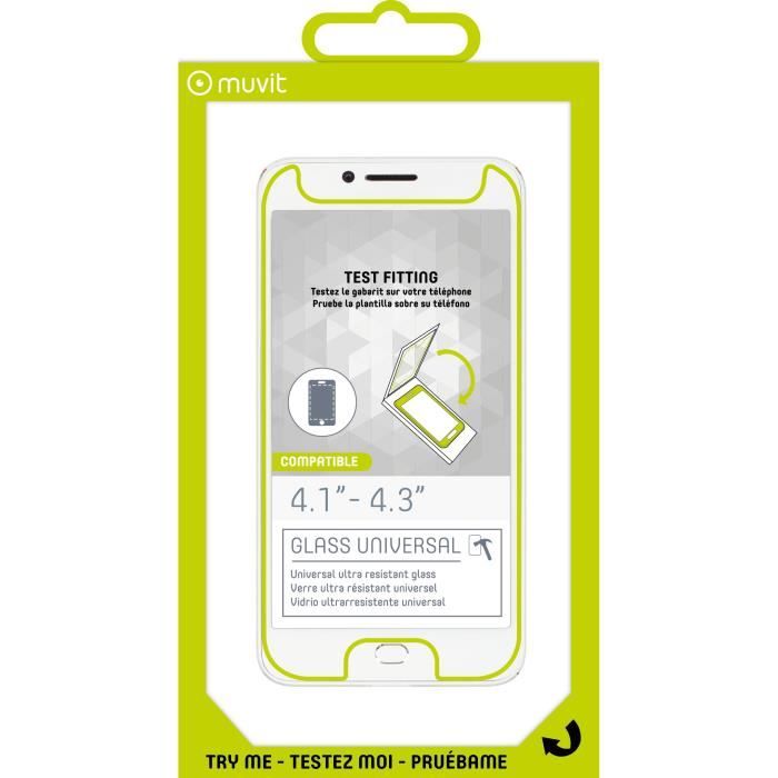 Muvit - MUVIT 1 Film Verre Tremp? Universel Avec D?coupe Bouton4,1"""" ? 4,3""""