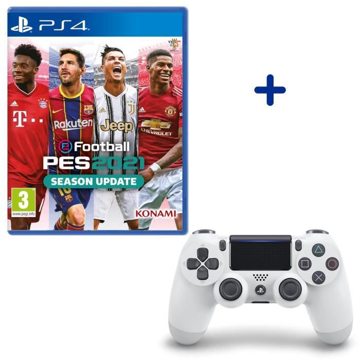 SONY COMPUTER ENTERTAINMENT - Pack PlayStation : Manette PS4 Dualshock 4.0 V2 Glacier White + eFootball PES 2021
